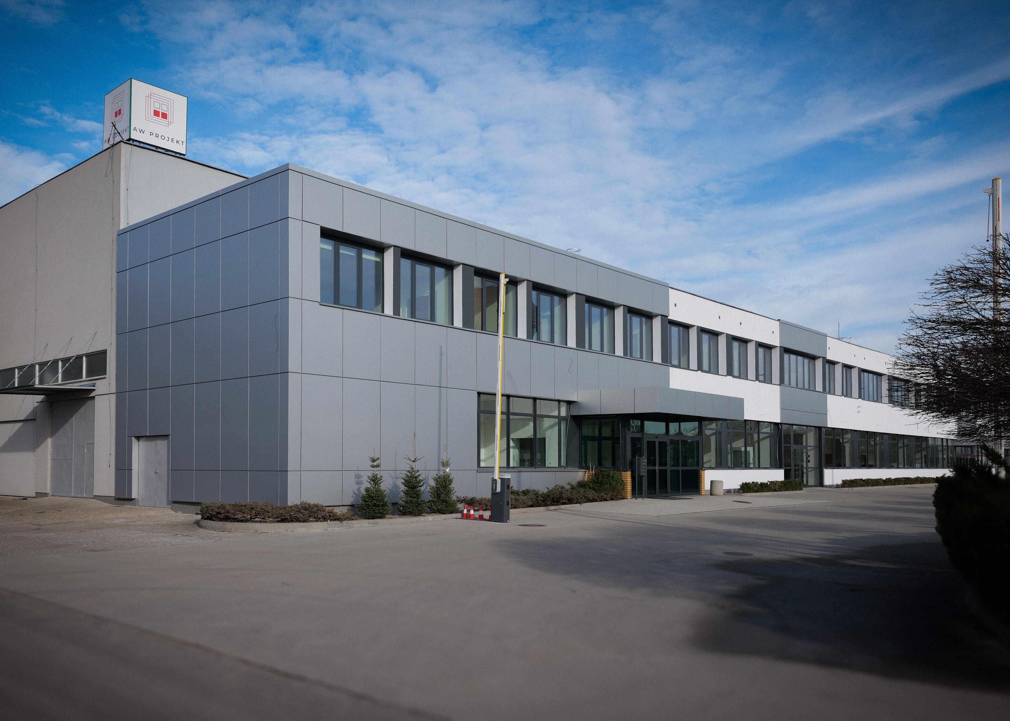 Multifunctional building Warszawa Rembertów with halls and offices for the production, service and trade industries Chełmżyńska street.